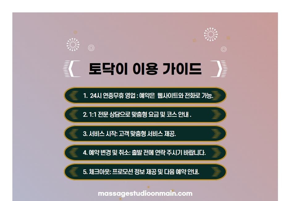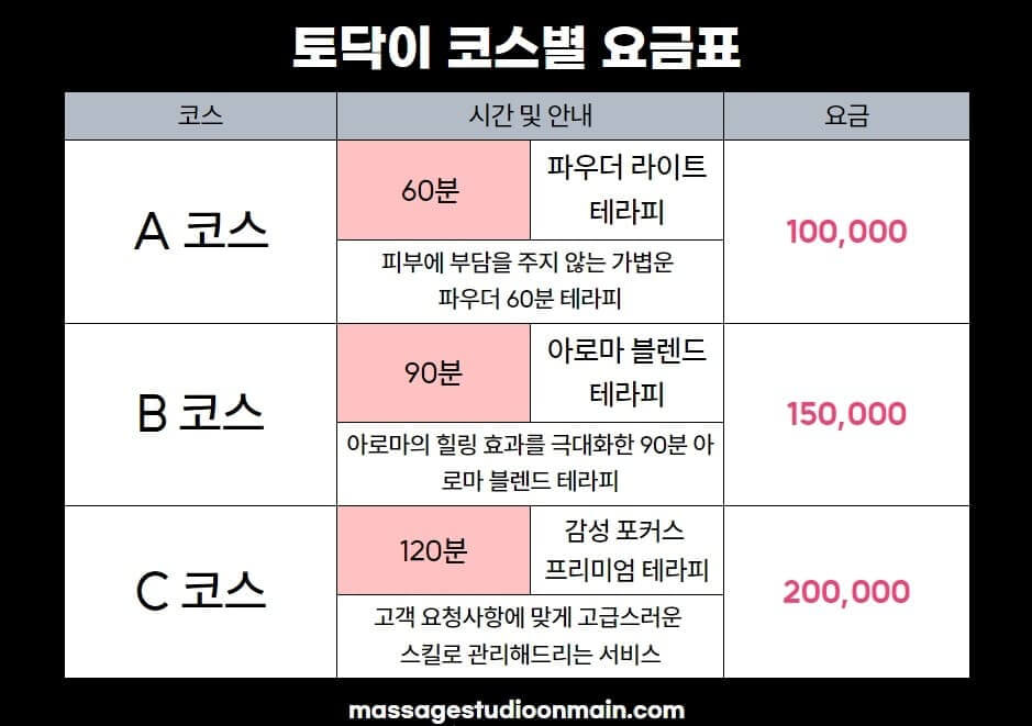 Patting is the core and core of our studio. This touch means going beyond just physical contact to the depths of your mind. Therapists at 토닥이 use sophisticated techniques and warm approaches to heal women’s emotions and bodies.